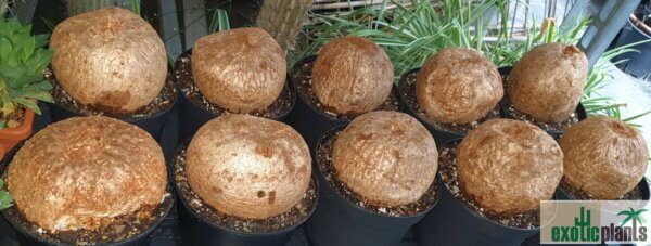 Bitte beachten Sie, dass viele Caudexpflanzen in der Zeit der Winterruhe keine Blätter und Blüten haben! Im Gegensatz zu vielen anderen Händlern verschicken wir meistens auch ruhende Pflanzen getopft im passenden Substrat, um die Wurzeln zu schonen. Sie müssen sich also nicht sorgen, dass die Pflanzen bei Ihnen vielleicht nicht anwachsen. Bei Pflanzen, die sich in der Vegetationsphase befinden, können größere Verpackungen erforderlich sein, was zu etwas höheren Versandkosten führen kann.